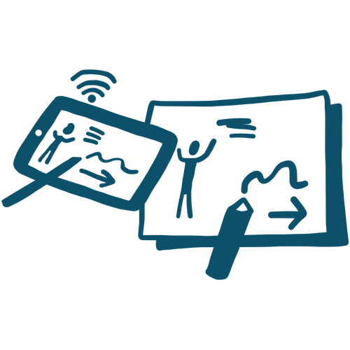 Un facilitateur graphique propose une visualisation adaptée au sujet traité, au contexte du moment, aux personnes à qui il s’adresse et à l’objectif de l’étape du processus de collaboration qu’il accompagne.